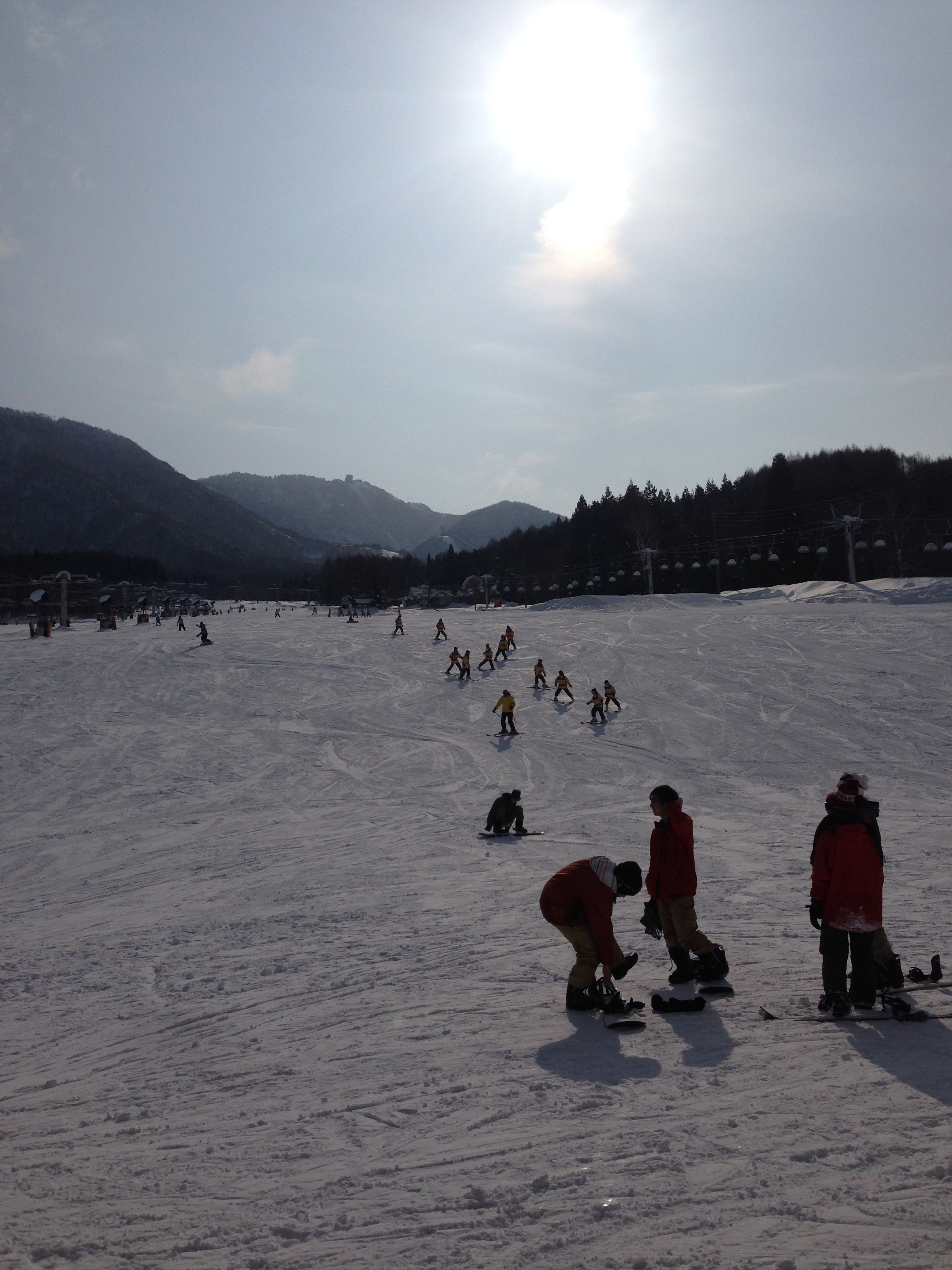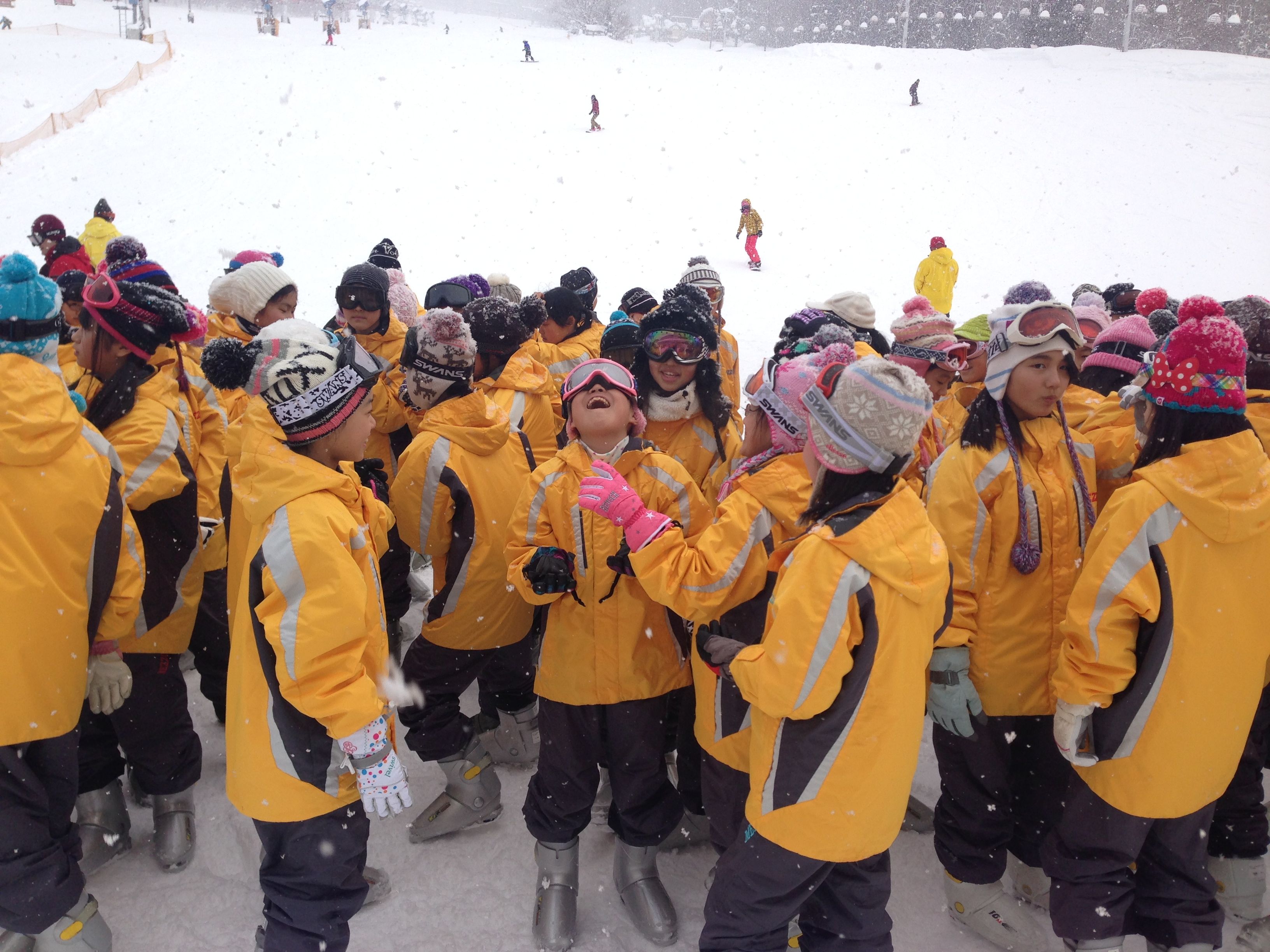 お天気は快晴、暖かく感じます。 今日は、宝探しゲームをしました。 クラス対抗で雪に埋もれた宝物を探し多く見つけたクラスが優勝です。優勝は、A組でした!おめでとう! また、初日に滑れなかった生徒たちもみるみる上達して滑れるようになりました。