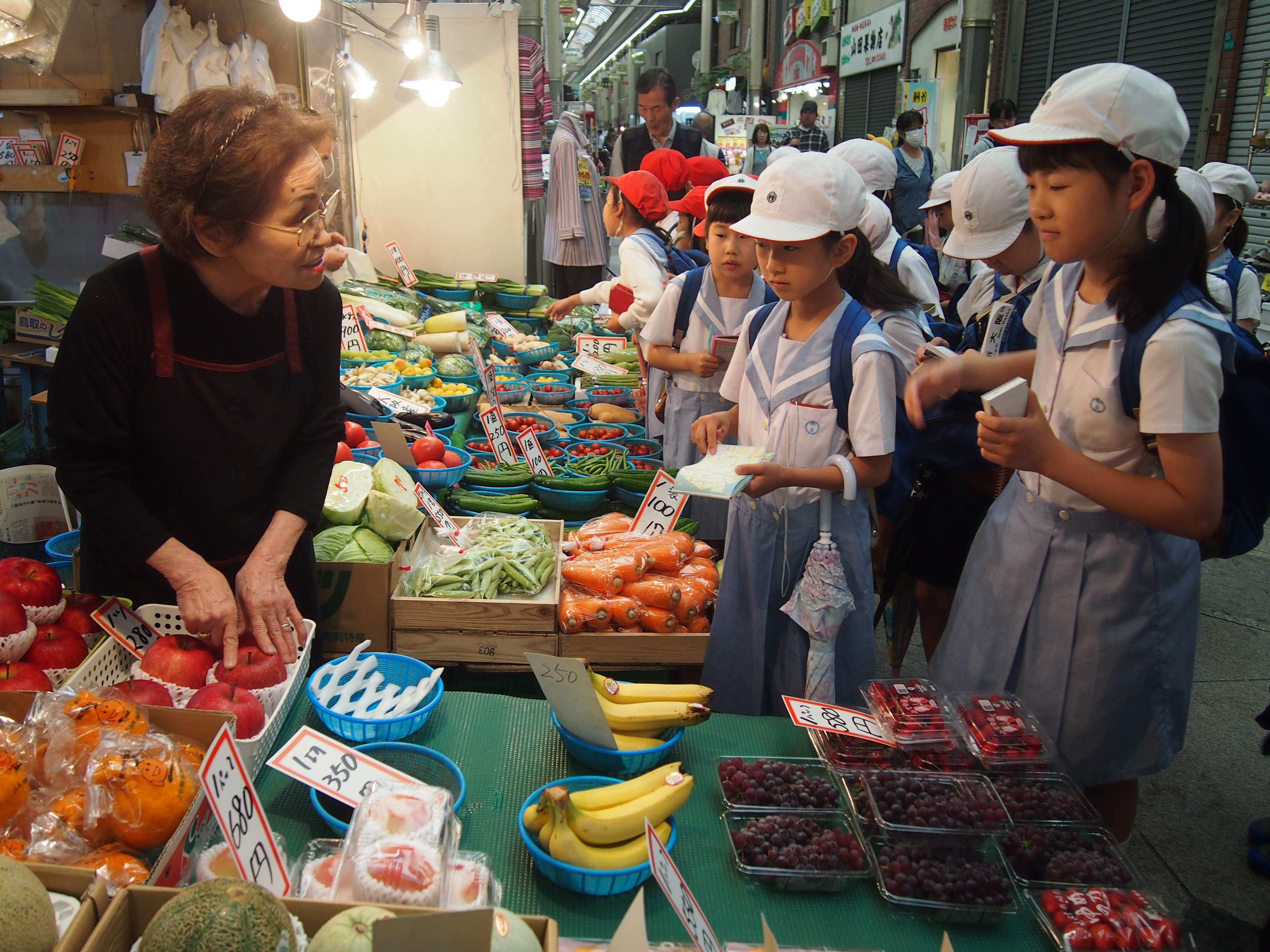 予算500円でお買い物をしながら、お店の方々にもインタビュー。お店の工夫やお客さんへの思いなどについてたくさん教えてもらいました。