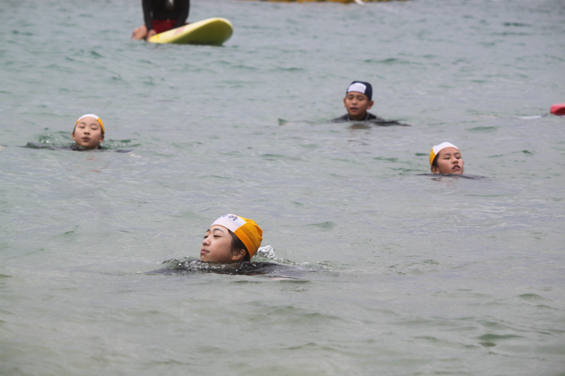 今日は波が少し高かったのですが、児童たちは自分の目標に向かって頑張っています。