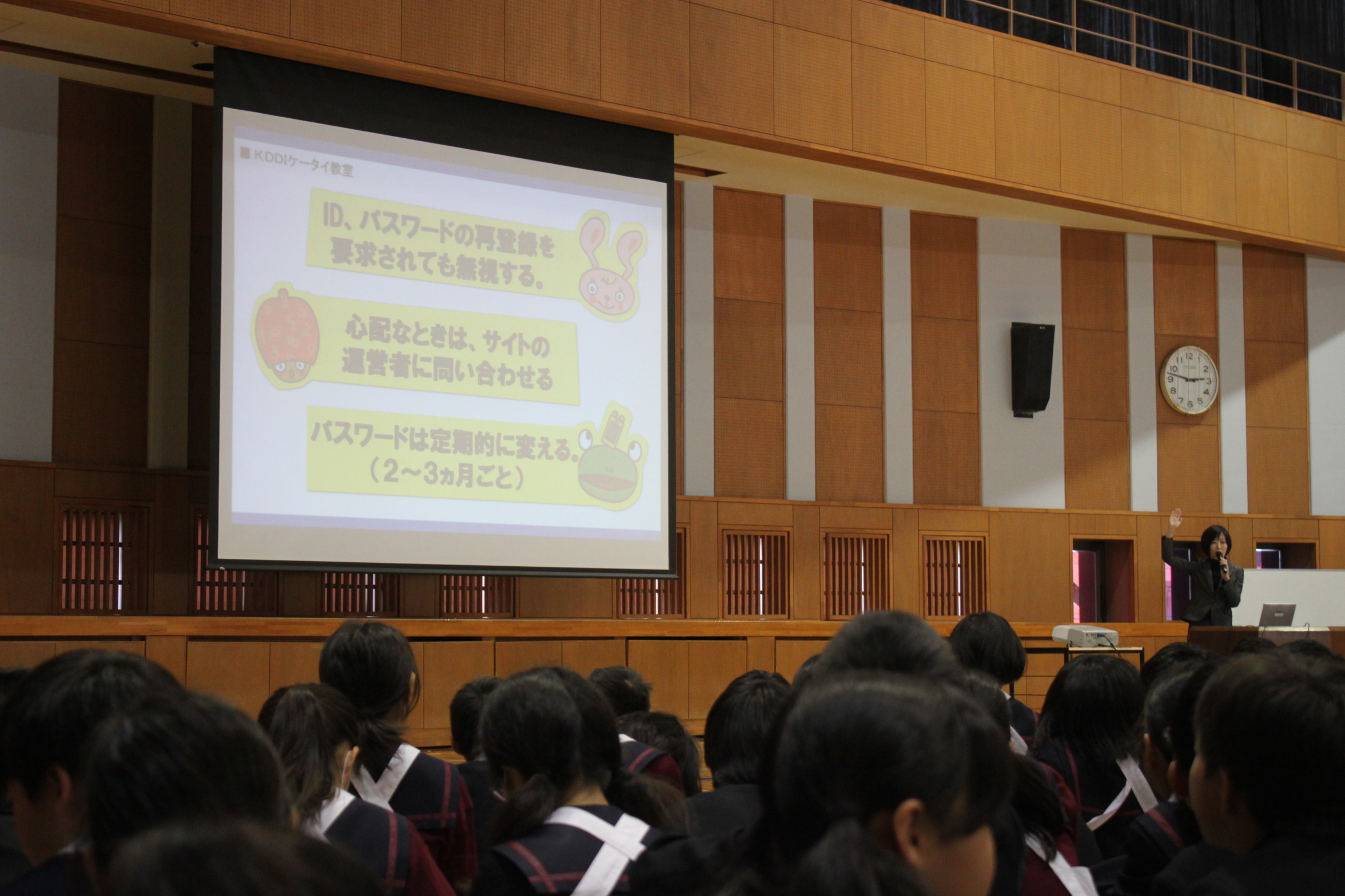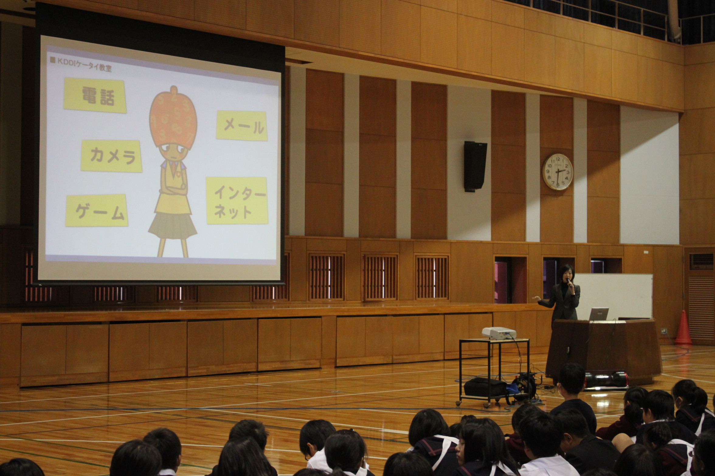 本日、6時間目4・5・6年生の児童集会でKDDIさんによるケータイ教室を実施しました。