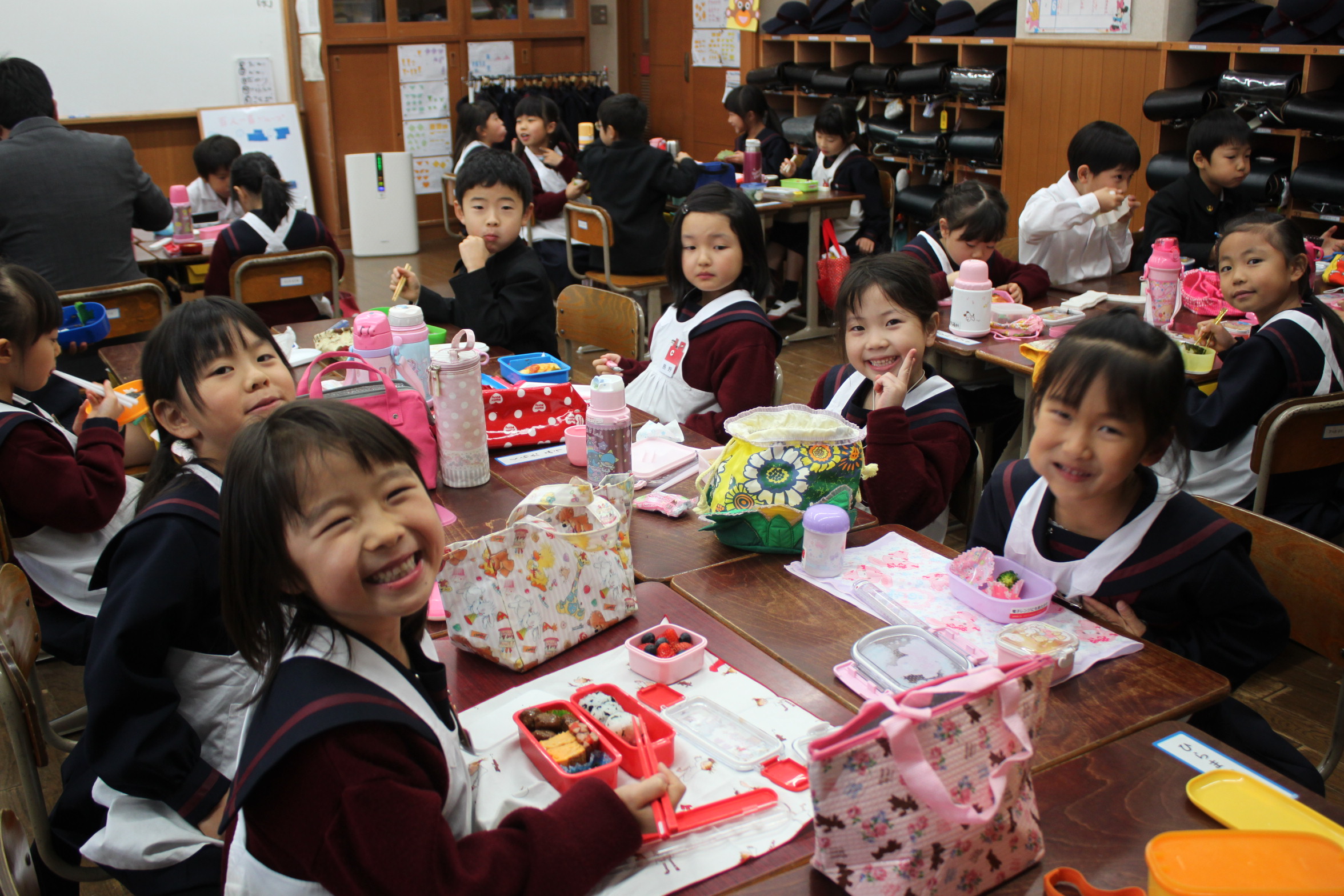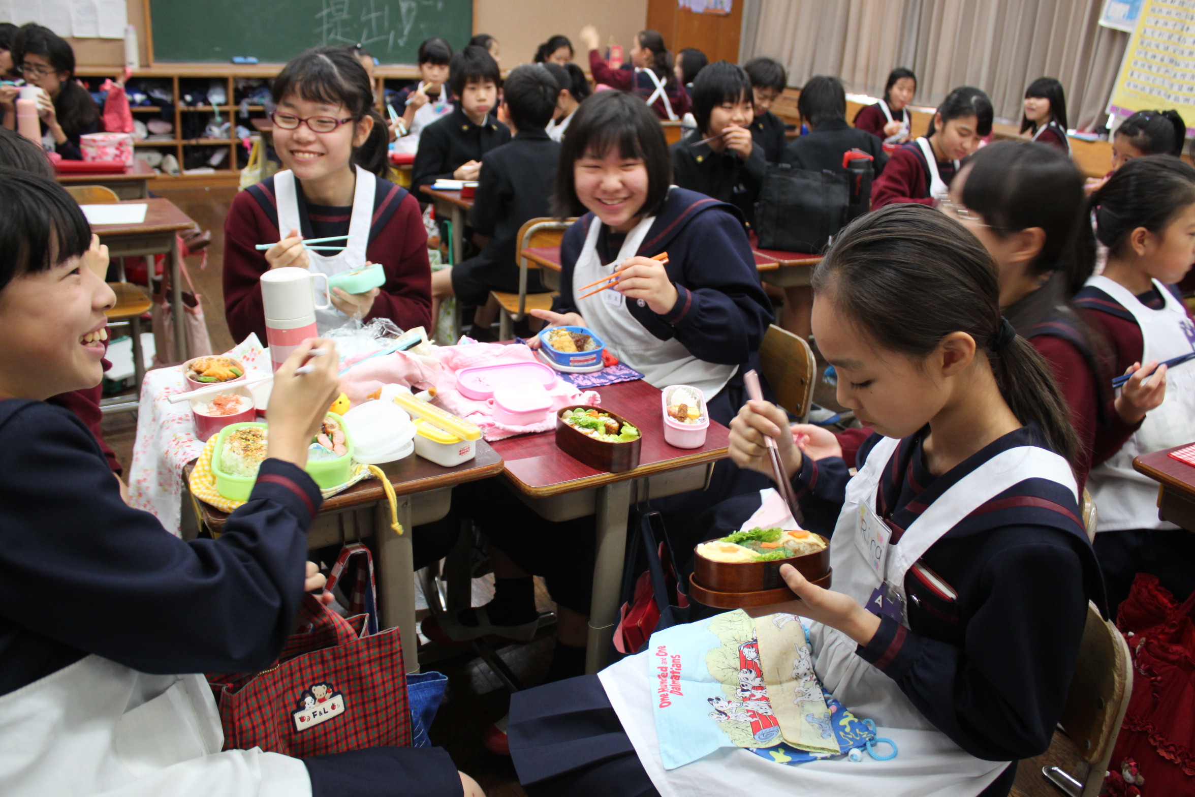 お家の人が作ってくれたお弁当を児童たちは、楽しく、美味しくいただいています。
