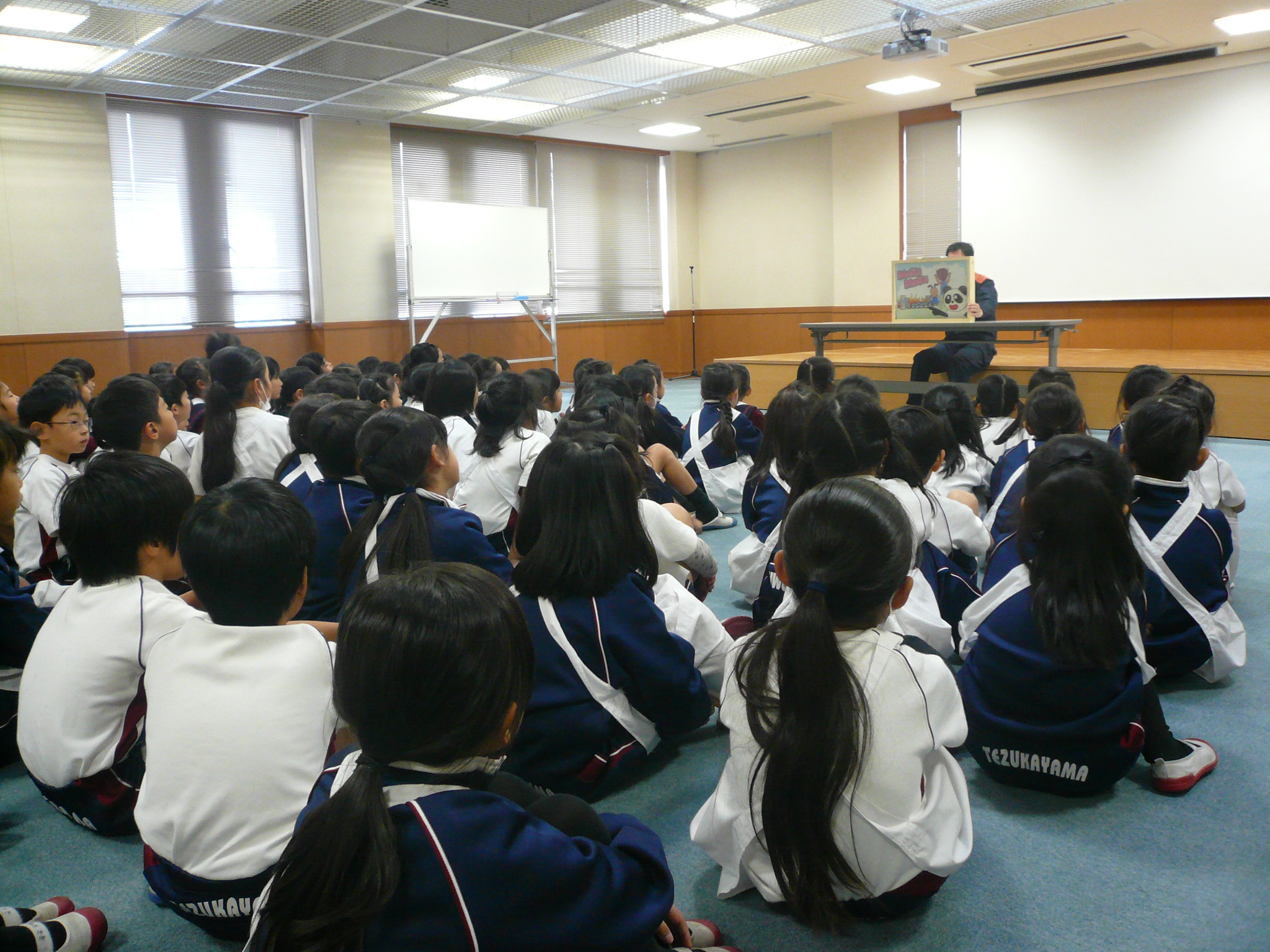 児童たちはかい枝さんとダイアンさんの落語に大笑いし、