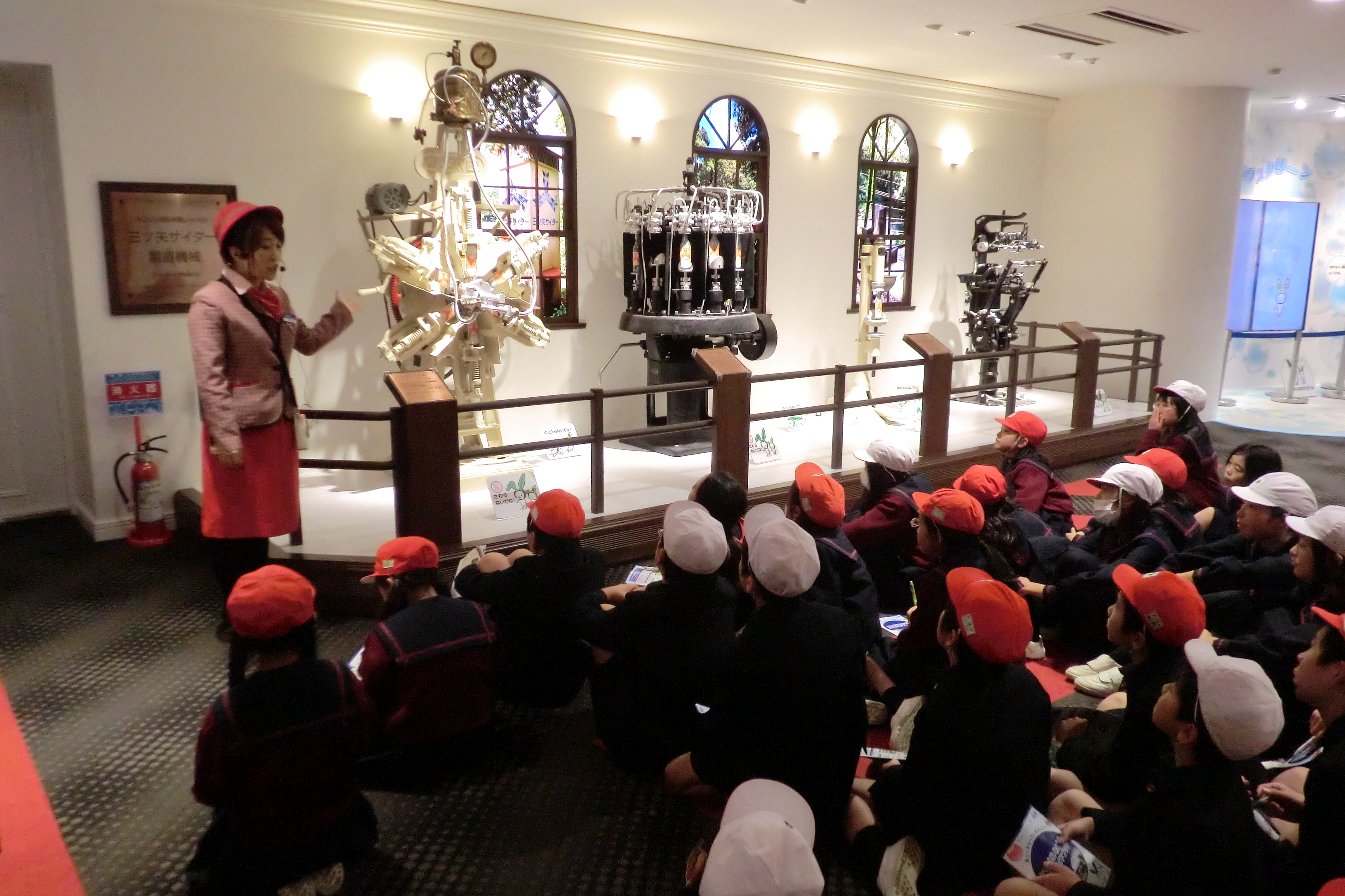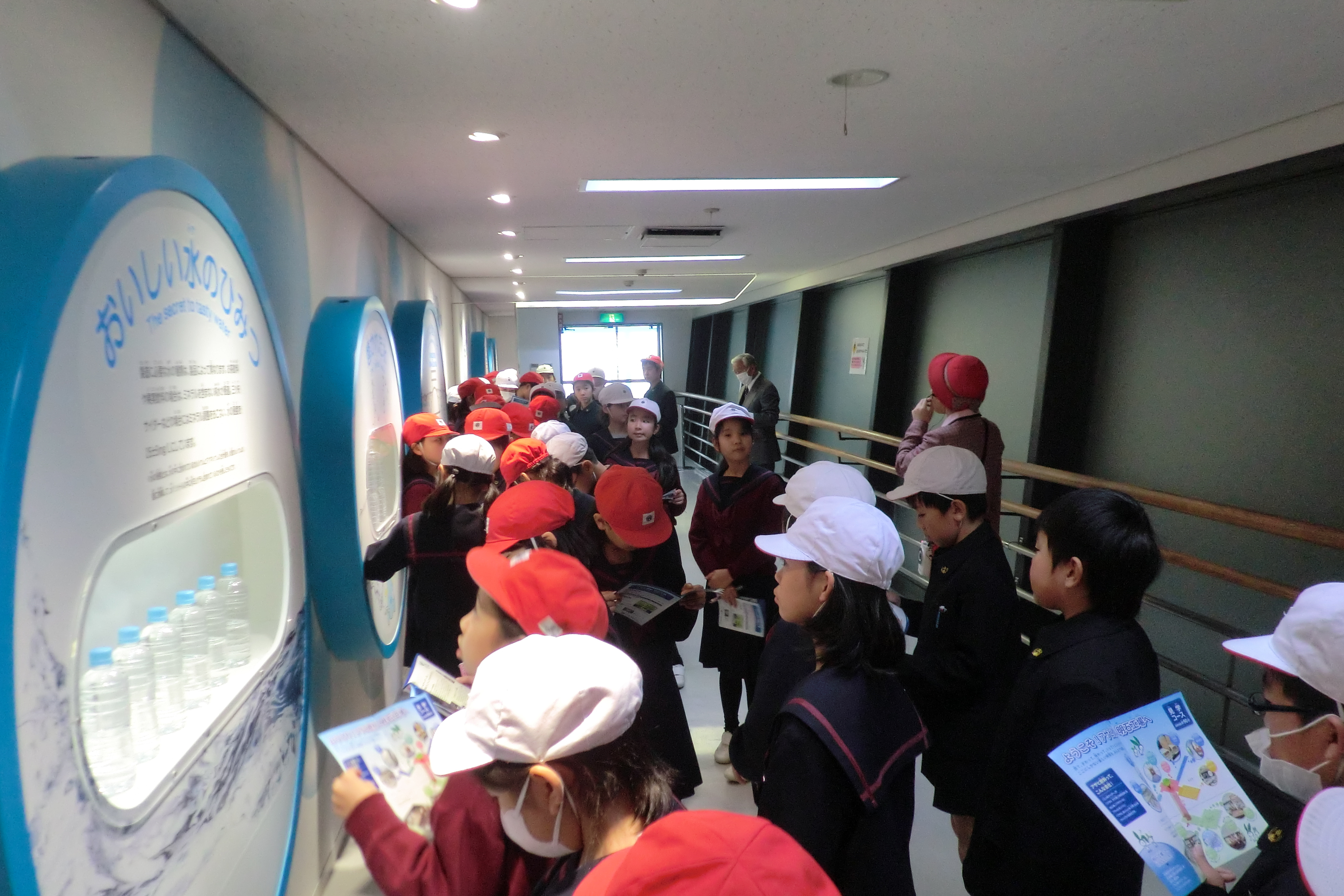 記念撮影を済ませた後、飲み物の調合から出荷までオートメーションで行われているところを見学しました。その後、工程について復習した後、環境という観点から3R(リデュース・リユース・リサイクル)などの説明を聞きました。