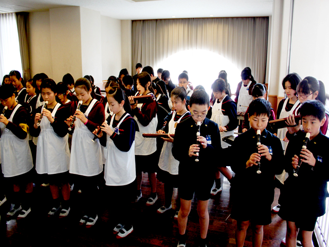 5年生がクラスごとに、器楽合奏の発表会をしました。