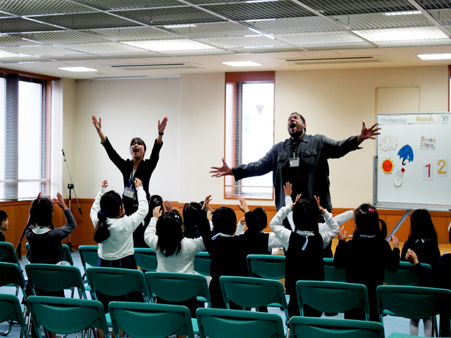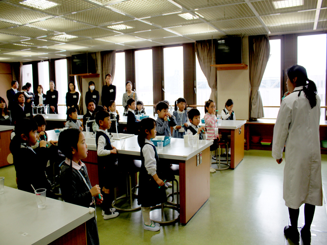 体験授業では、音楽・理科・英会話・情報・図書の授業が行われ、それぞれの教室で興味深く、