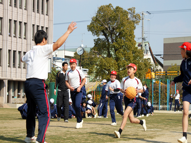 お昼からは、「スポーツ会」として先生チームと6年生チームで