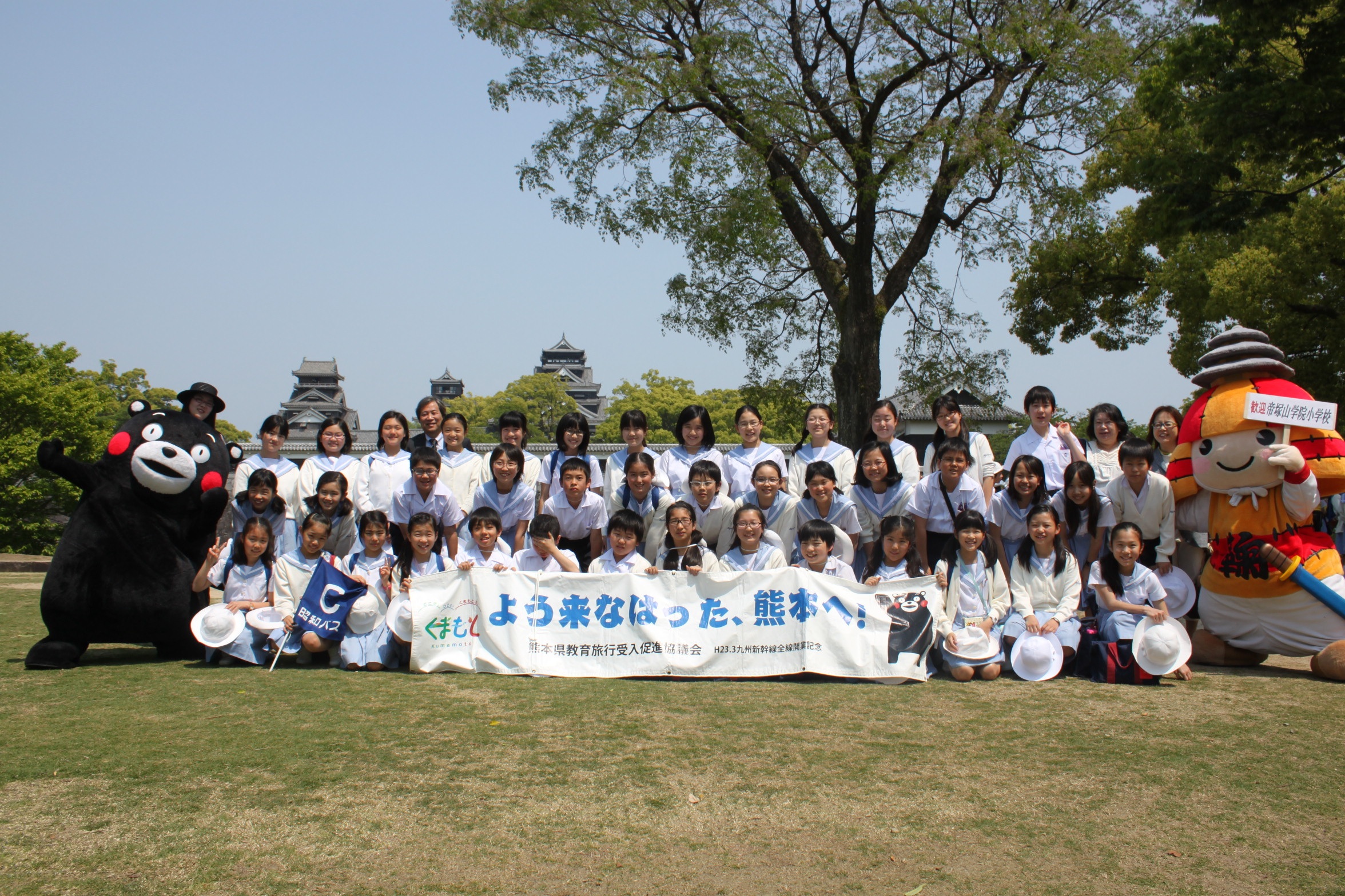 くまもんに出会えて児童たちは大喜びでした。