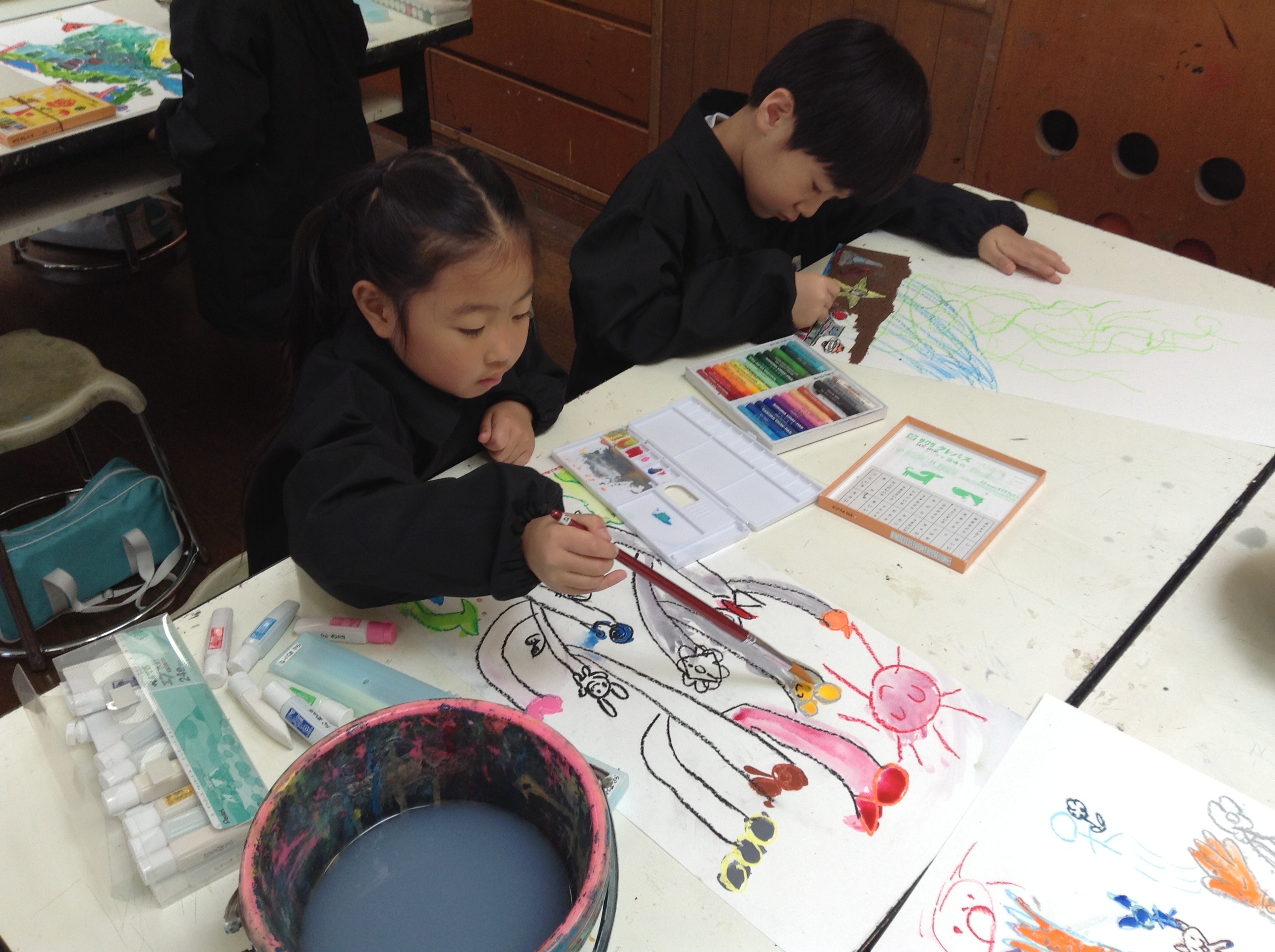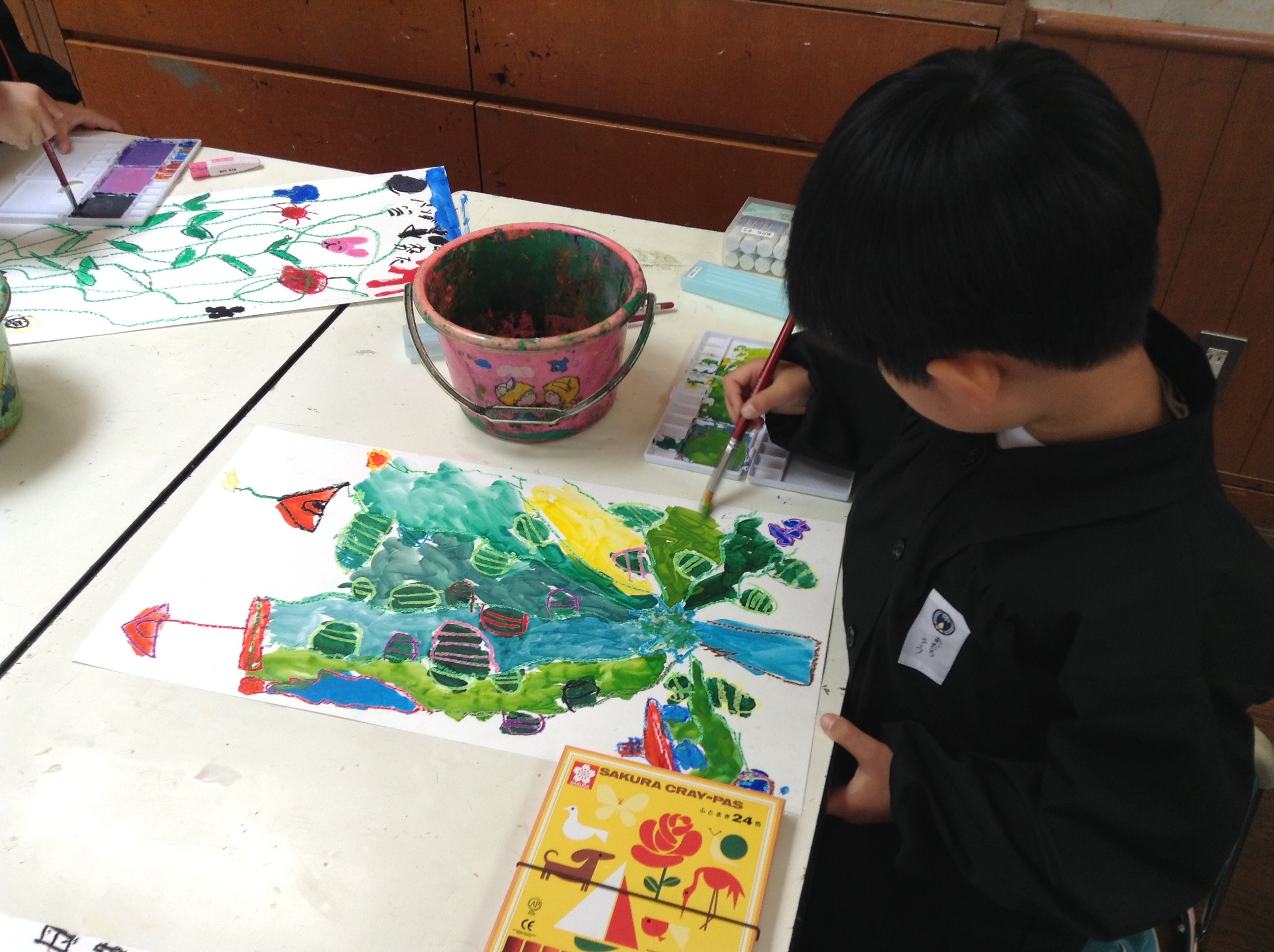 1年生の図工の授業では、水彩画で「ふしぎなたね」を描いています。
