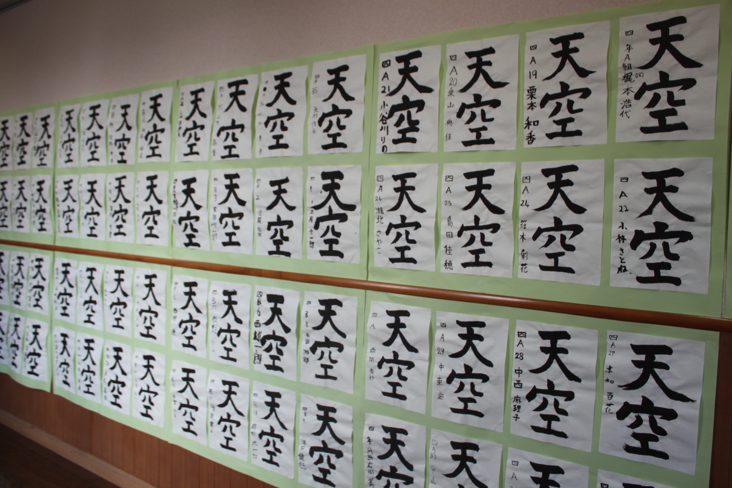 児童たちが書道の時間に丁寧に書いた作品が、展示されています。