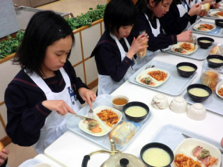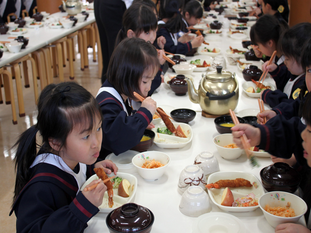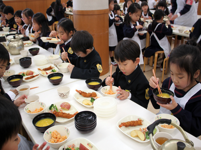 児童たちは、ナイフとフォークを上手に使って美味しくいただきました。