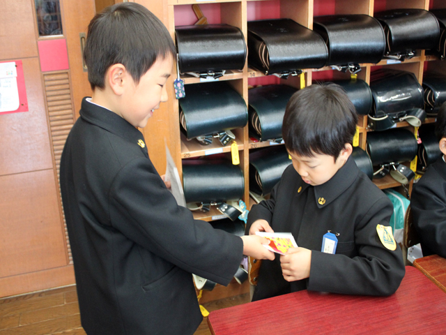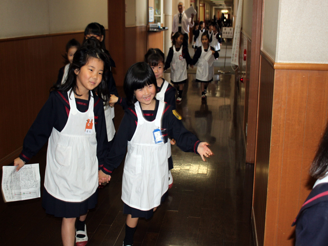 1年生は、2年生のお兄さん•お姉さんに手をつないでもらい、図書室や保健室の利用の仕方などを案内してもらいました。