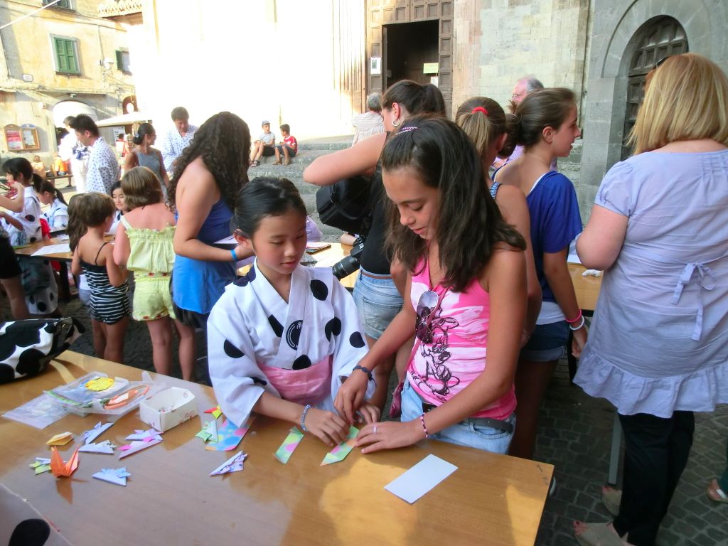能や書道、折り紙などの説明のデモンストレーションぐらいからイタリアの子供達、