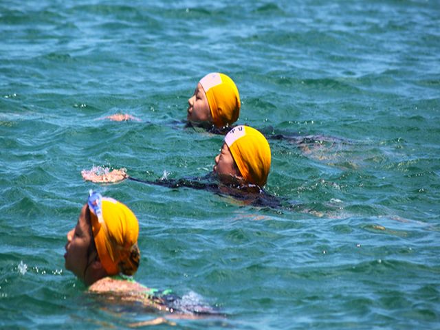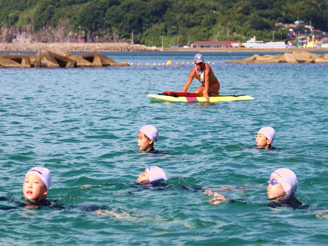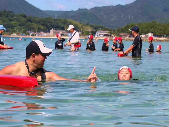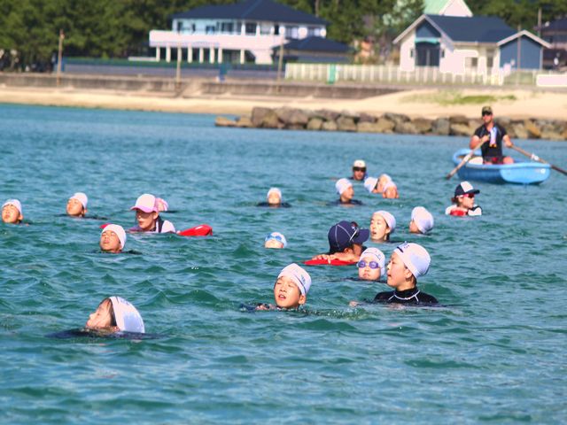 海の状態は、少し流れが速く泳ぎづらいようでしたが、みんな精一杯力を出し泳ぎ切りました。