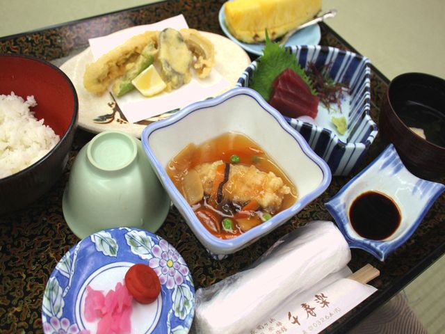 17日の夕食の献立は、フグのフライ・お刺身(マグロ・ホタテ)・すき焼き鍋・魚麺のお吸い物・ご飯・漬物・オレンジ
