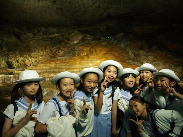 修学旅行3日目、皆元気に下関を出発し、秋吉台・秋芳洞・錦帯橋へ向かいます。