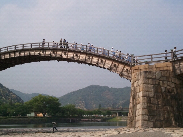 錦帯橋は、山口県岩国市の綿川に架橋された木造のアーチ橋です。