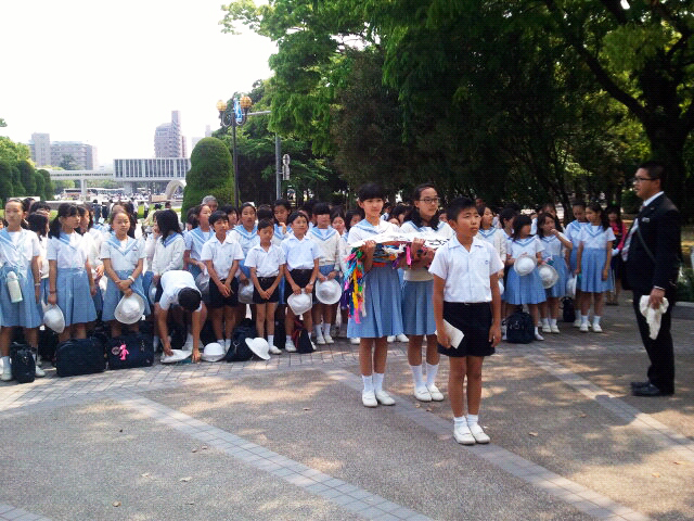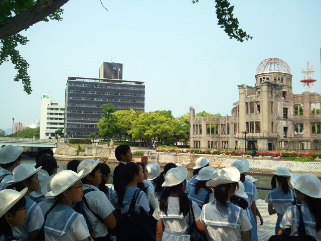 広島平和記念公園では、折り鶴を捧げ、平和と命の尊さを学びました。