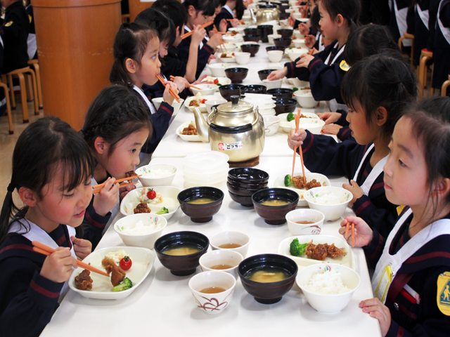 みんなおいしそうに笑顔で給食をいただきました。