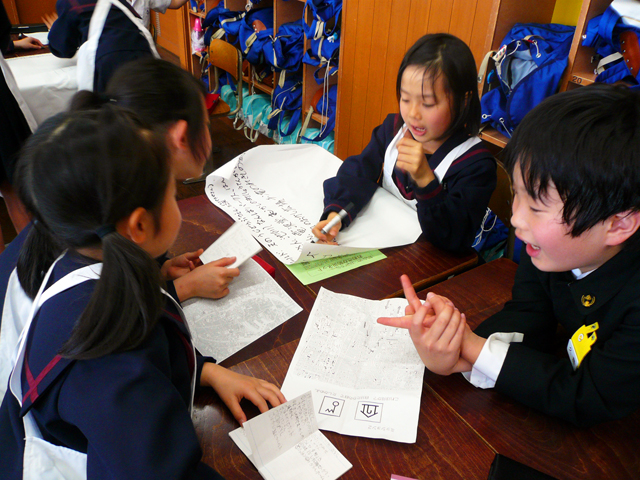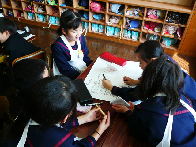 学校に戻ってすぐに班で共有です。さらに深い学習へとつながる第一歩となりました。