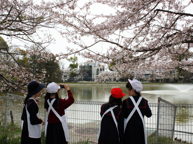 4年生は、理科の授業で万代池に春を見つけにいきました。