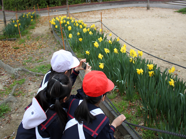 児童たちは、たくさんの春を見つけ、カメラで撮影しました。