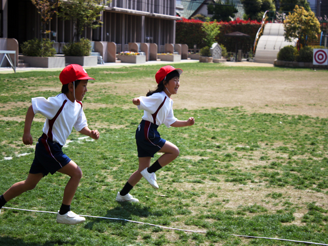 児童たちは、みんな先生の「よーいドン!」と言う合図で元気に走っていました。