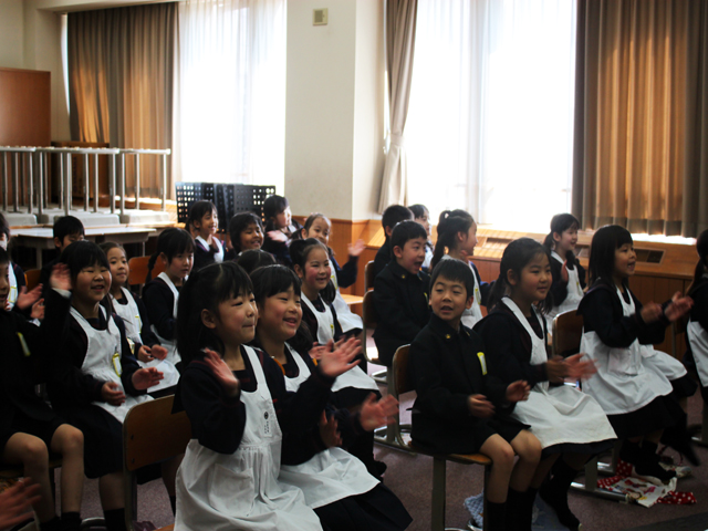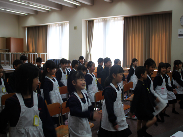 1年B組が、元気にPTA総会で歌う練習をしていました。