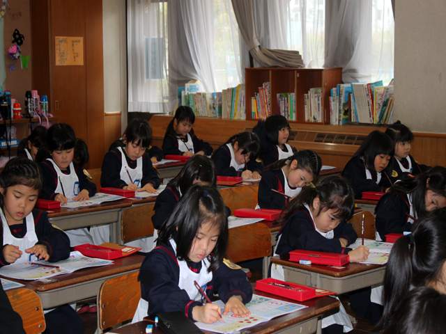 児童たちは、真剣に授業に取り組み、一生懸命に数字を書く練習をしていました。