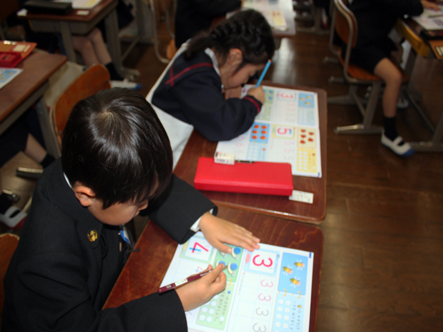 さんすうの授業では、数字の書き方を勉強しています。