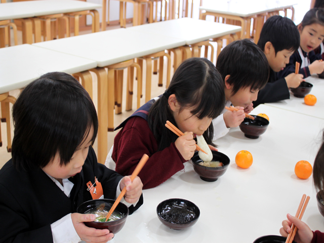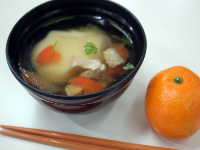 お餅は、おいしそうにつきあがり、6年生が丸めて、お雑煮としておいしくいただきました。