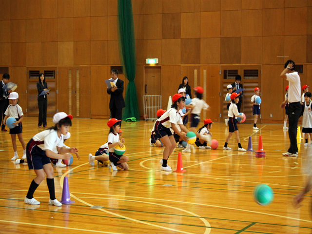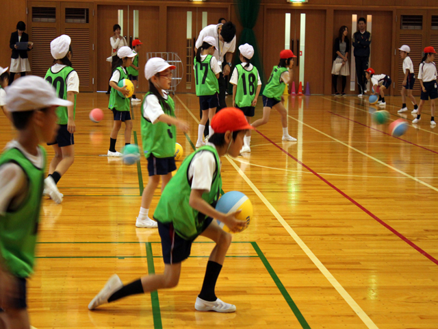 バルシューレとは、専門のボール運動種目に入る前にボールゲームに共通してみられる動き(ボールの落下地点を見極める、相手の隙を見つける等)を楽しく学べるものです。
