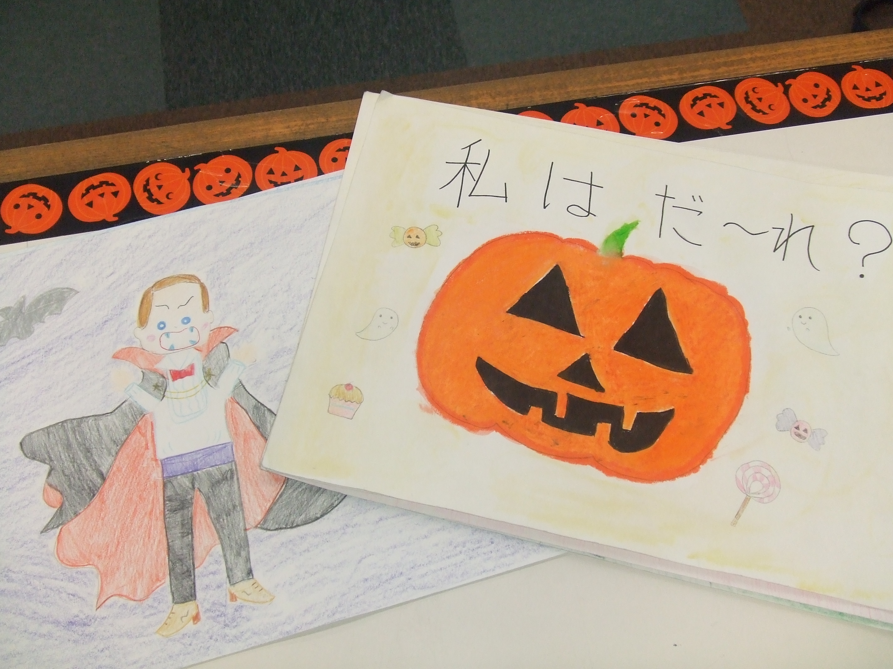 テレビ朝礼では、手作りのハロウィン紙芝居を紹介してくれました。