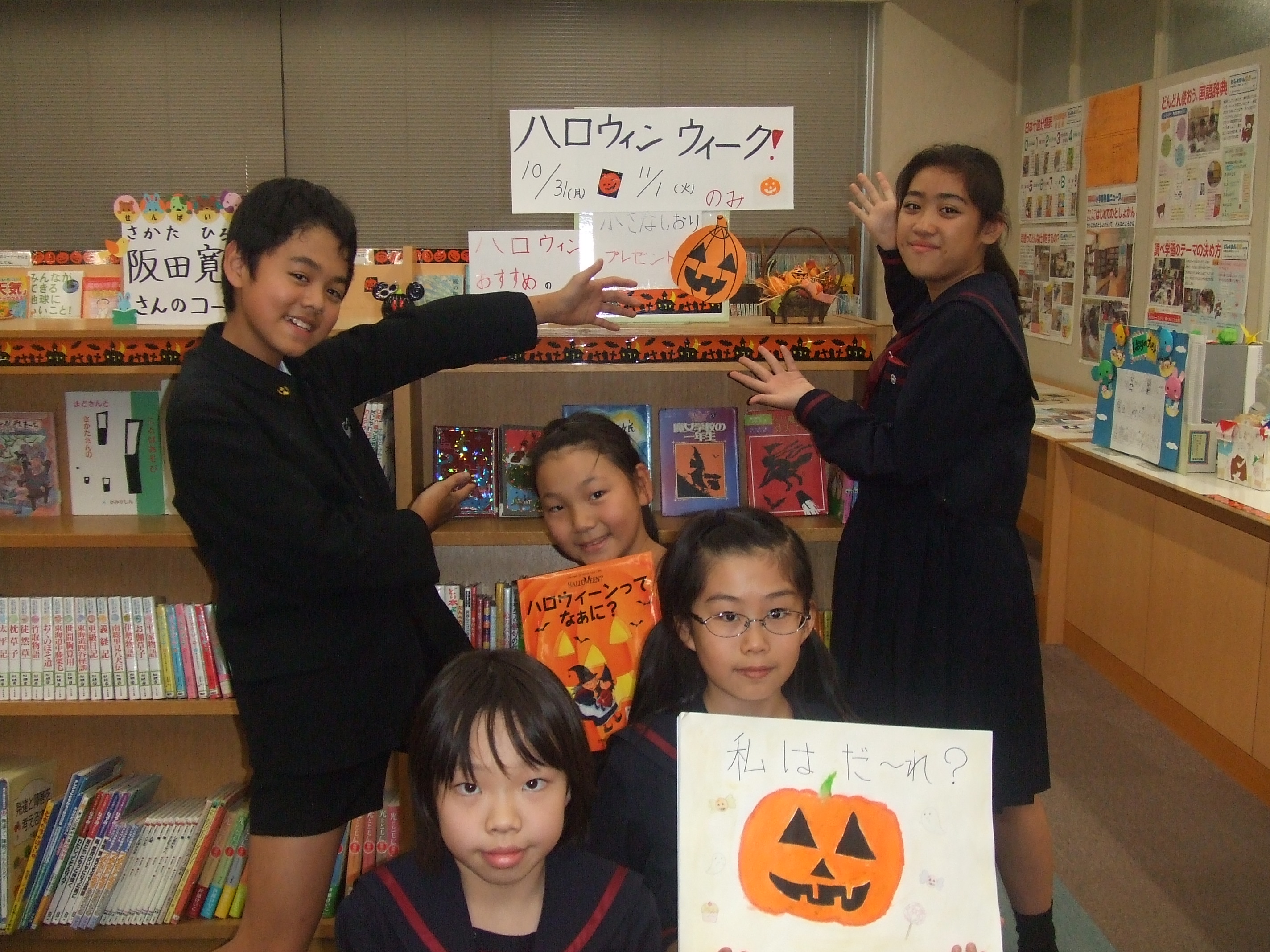 図書委員さんが図書室をハロウィン模様に変身させ、