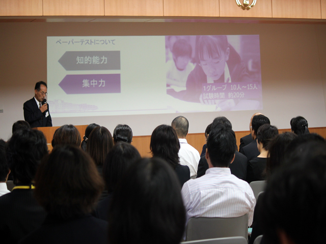 多目的ホールでは、学校や入試についての説明があり、保護者の方々は熱心に聞いておられました。