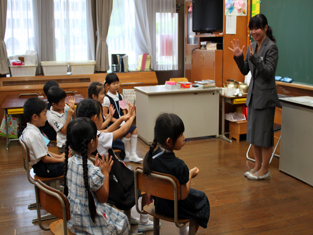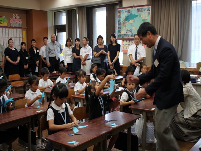 体験授業では、国語・算数・理科・体育・生活の授業が行われ、それぞれの教室で興味深く、楽しみながら活動する園児のたちの姿を見ることができました。