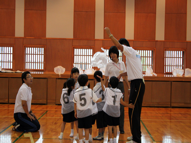来る演武会に向けて、小学生のペアに大学生が1〜2名付き、技へのアドバイスや指導をしていただきました。練習後には記念撮影も行い、合氣道部児童にとって、楽しく充実した合同練習ができました。