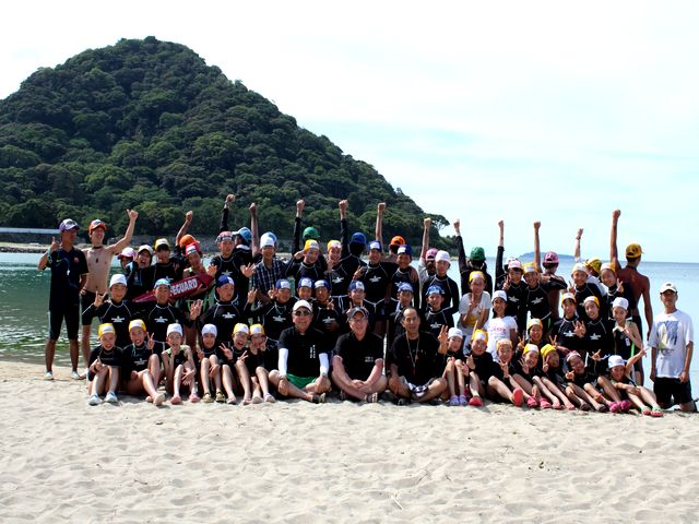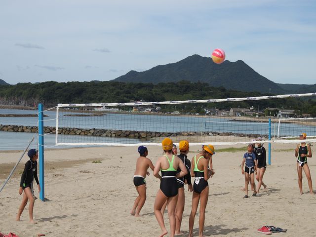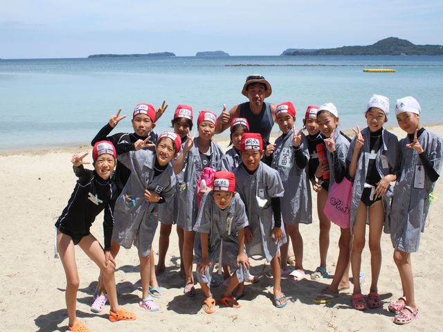 テスト終了後は、各クラスで記念撮影し、浜遊びなどをして