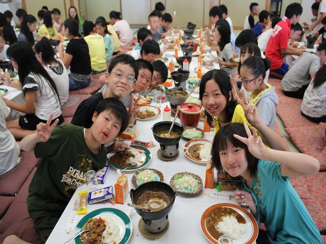 児童たちは、朝ごはんをしっかり食べ、大阪に帰る準備をしました。