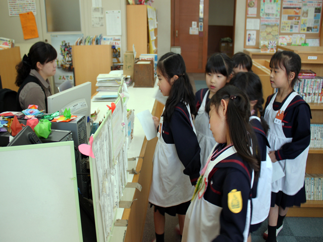 図工室や保健室、図書室などを案内してもらい嬉しそうでした。