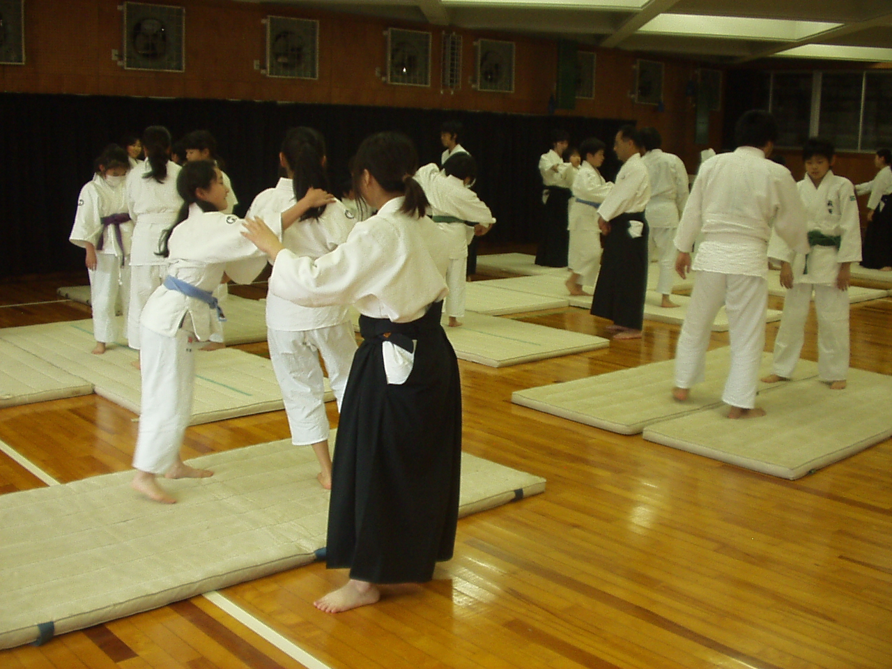 まず、準備体操を済ませ、黒帯の方に技を指導していただきました。