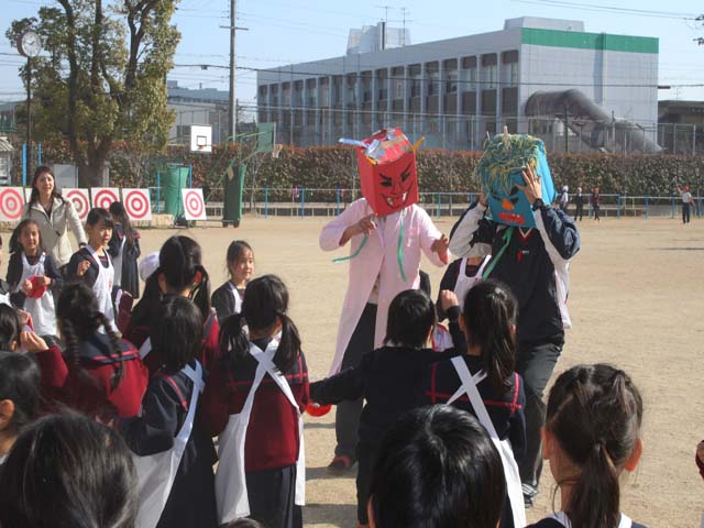元気いっぱいに「鬼は外、福は内」と豆まきをしました。