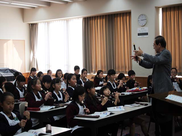 今回は、4年B組(41名)で器楽アンサンブルをすることにしました。