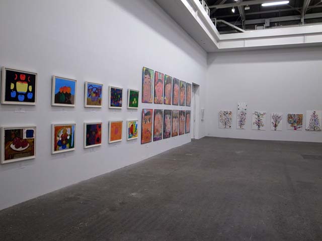 広い会場には、児童たちの元気で色彩豊かな作品が飾られています。