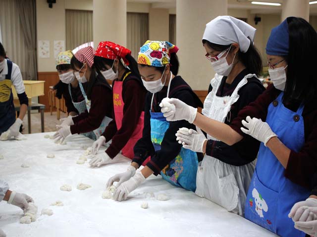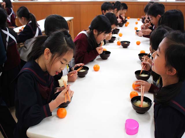 お餅は、おいしそうにつきあがり、6年生が丸めて、お雑煮としておいしくいただきました。