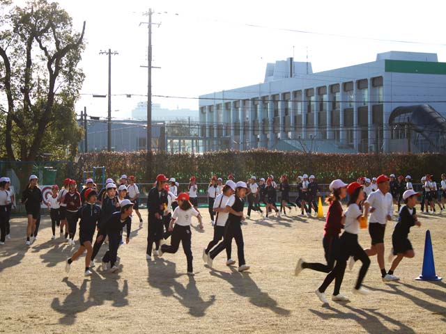 寒さに負けない体力作りを目標に、自分のペースで5分間走ります。