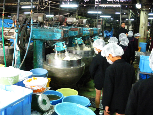 「かまぼこが出来るまで」のお話を聞いた後、工場見学をさせていただきました。