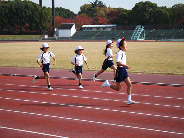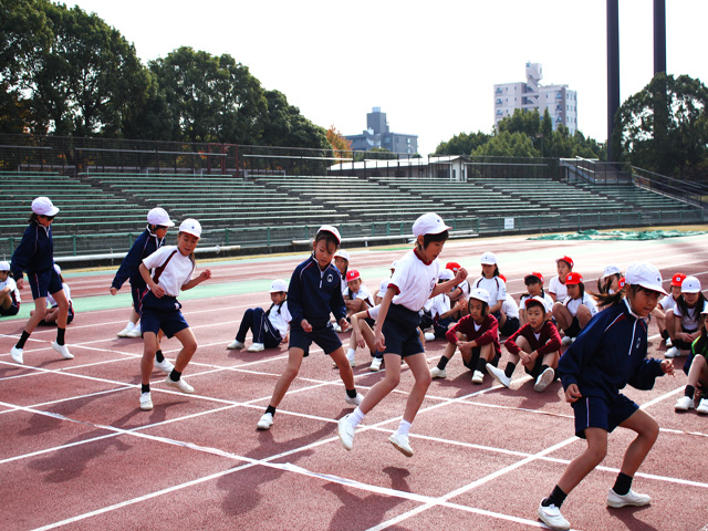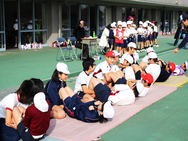 天候にも恵まれ、児童たちは元気に50m走をしたり、反復横跳び、上体起こしなどをしたりして、