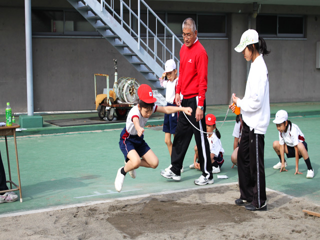現在の体力を測定しました。昨年より伸びた記録に児童たちは、喜んでいました。