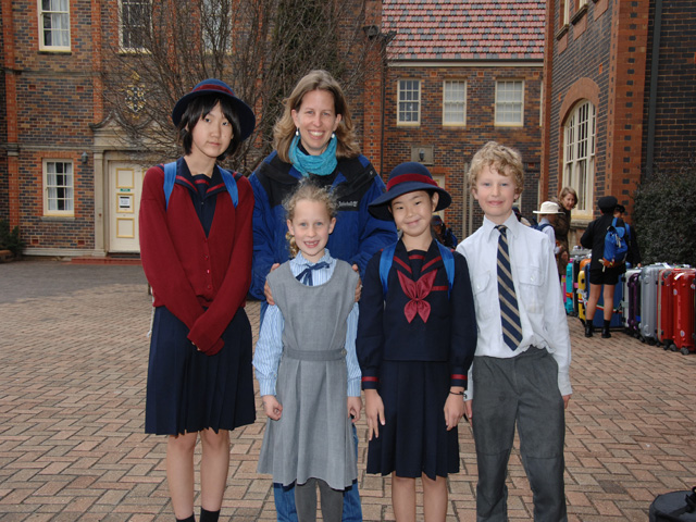 アーミデイルスクールでの授業やアクティビティー(団扇づくり、動物体験、園児との交流)で、