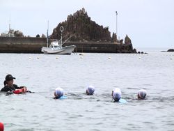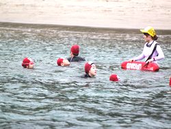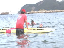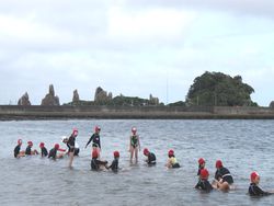波の流れが少し速かったようですが、児童たちは水泳練習を一生懸命頑張っていました。